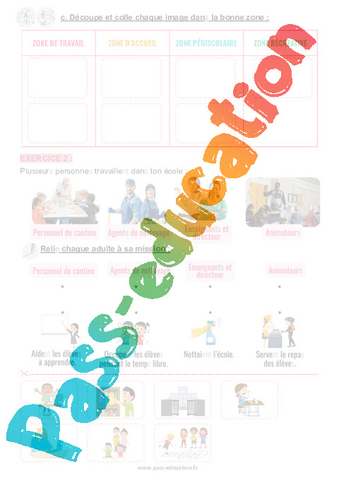 L’école est un lieu qui comporte plusieurs zones pour bien fonctionner :