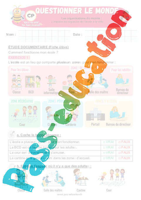 L’école a plusieurs zones pour bien fonctionner. □ VRAI □ FAUX