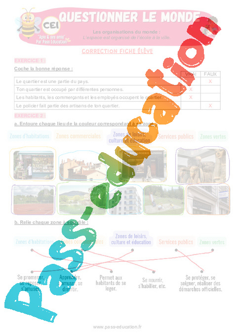 4.1 Correction Fiche élève : 4eme Harmos L’espace est organisé de l’école à la ville pdf
