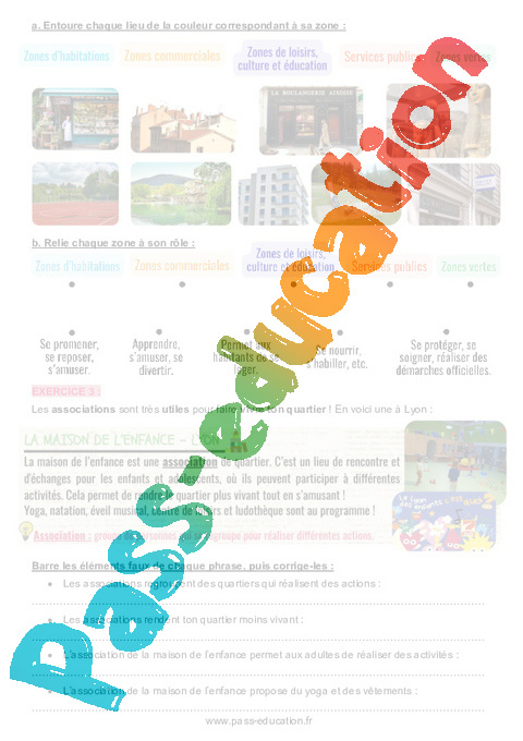 a. Entoure chaque lieu de la couleur correspondant à sa zone :