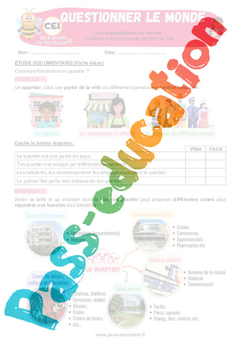 Exercices – L’espace est organisé de l’école à la ville en 4eme Harmos – Apis & ses amis : Questionner le monde.