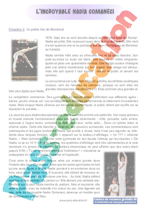 Correction Questionnaire : 6eme, 7eme, 8eme Harmos Chapitre 2 L’incroyable Nadia Comaneci pdf