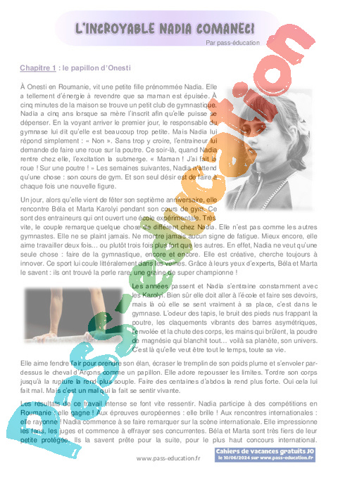 Littérature : 6eme, 7eme, 8eme Harmos L’incroyable Nadia Comaneci pdf