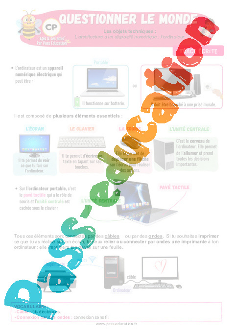 Leçon – L’ordinateur – Architecture d’un dispositif numérique en 3eme Harmos – Apis & ses amis : Questionner le monde.