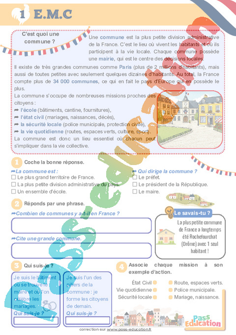 Correction Ma commune, mon lieu de vie : 6eme, 7eme Harmos – Fichier d’activités EMC pdf