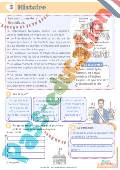 ➦ Le Parlement, composé de l’Assemblée nationale et du Sénat, vote les lois et contrôle le gouvernement. Les députés et sénateurs sont élus par les citoyens.
