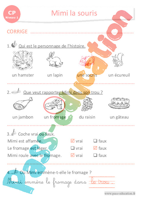 Correction Questionnaire Mimi la souris : 3eme Harmos – Luminéo pdf