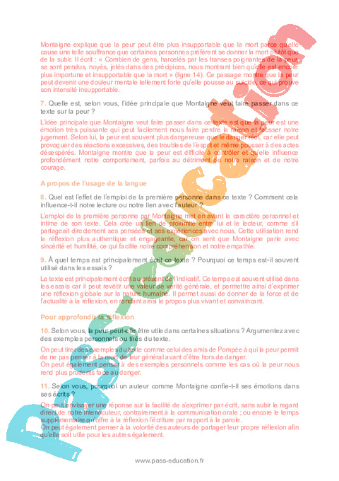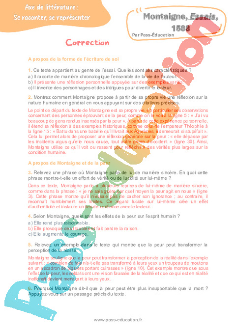 Correction Questionnaire Montaigne, Essais : 11eme Harmos pdf