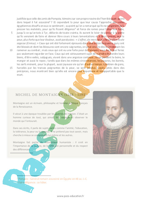 6. Pourquoi Montaigne dit-il que la peur peut être plus insupportable que la mort ? Appuyez-vous sur un passage précis du texte.
