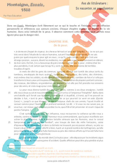 Littérature Montaigne, Essais : 11eme Harmos pdf