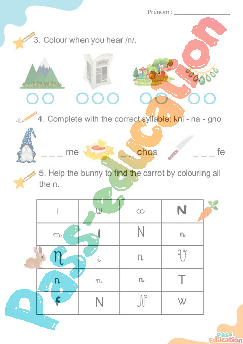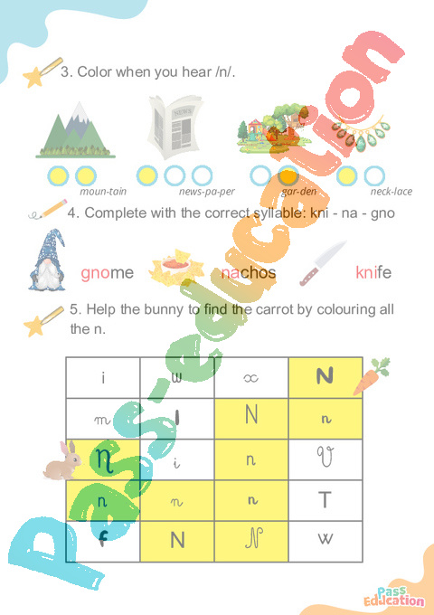 5. Help the bunny to find the carrot by colouring all the n.