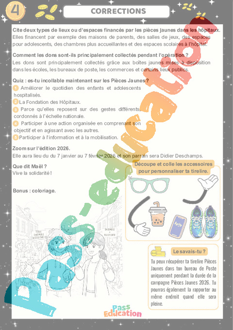 Cahier de vacances sur l’opération pièces jaunes.