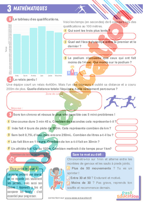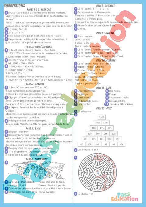 Correction L’athlétisme – Cahier de vacances : 6eme, 7eme, 8eme Harmos pdf