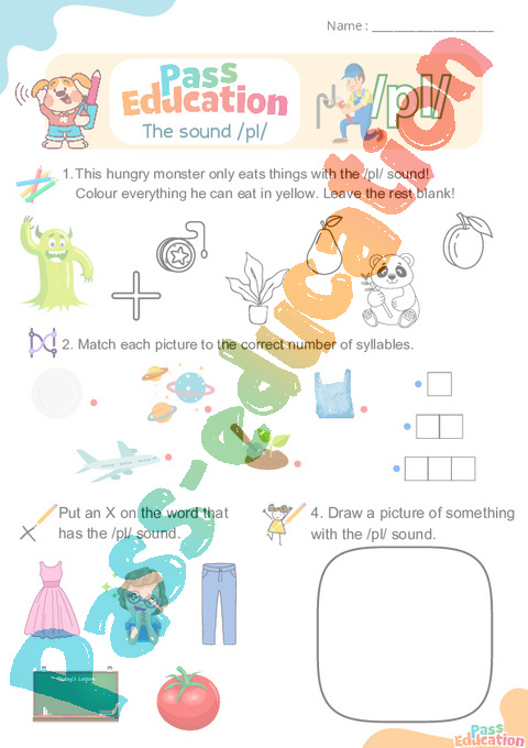 2. Colour the images when you hear /pl/.