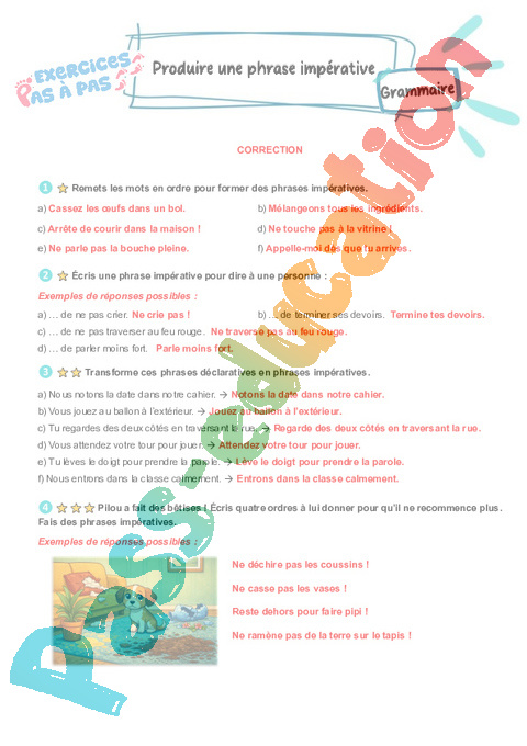 Correction Produire une phrase impérative : 5eme Harmos – Mémo + Exercices Pas à Pas pdf