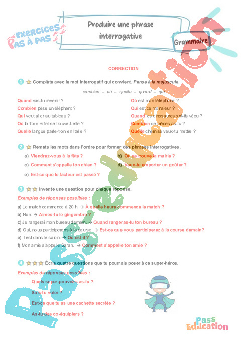 Correction Produire une phrase interrogative : 5eme Harmos – Mémo + Exercices Pas à Pas pdf