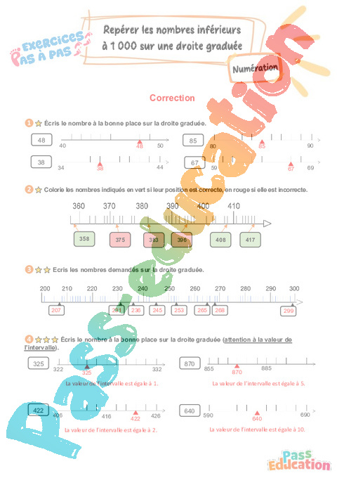 Repérer les nombres inférieurs à 1 000 sur une droite graduée : 5eme Harmos – Exercices Pas à Pas rtf