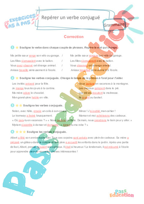 Correction Repérer un verbe conjugué : 5eme Harmos – Mémo + Exercices Pas à Pas pdf