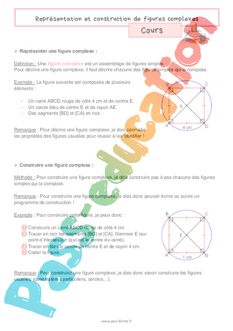 Leçon 6ème Représentation et construction de figures complexes pdf