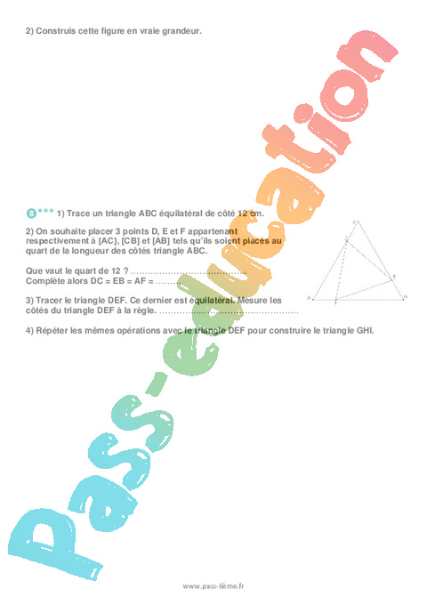 3) Tracer le triangle DEF. Ce dernier est équilatéral. Mesure les côtés du triangle DEF à la règle. ………………………………………….