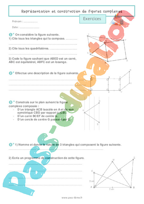 Représentation et construction de figures complexes – Exercices de géométrie pour la 6ème – PDF à imprimer
