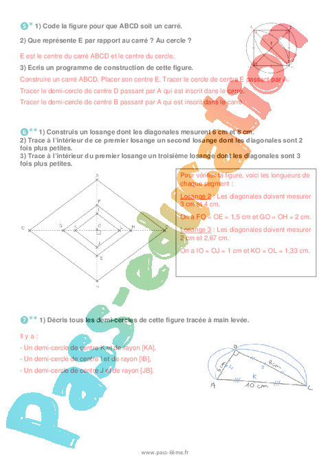 ** 1) Construis losange dont les diagonales mesurent 6 cm et 8 cm.