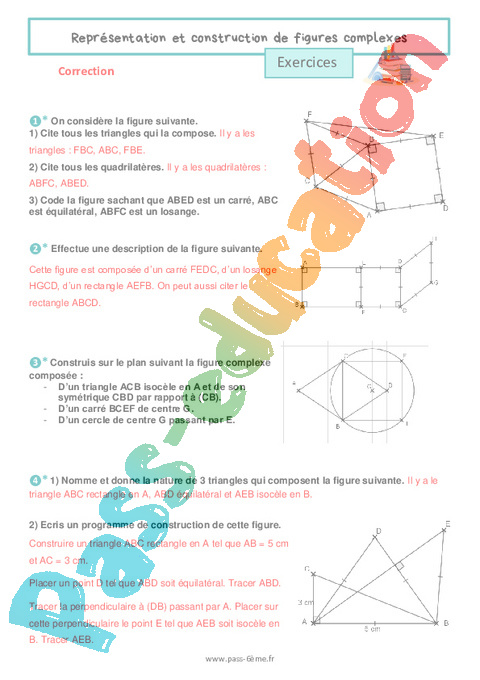 Exercices Correction 6ème Représentation et construction de figures complexes pdf