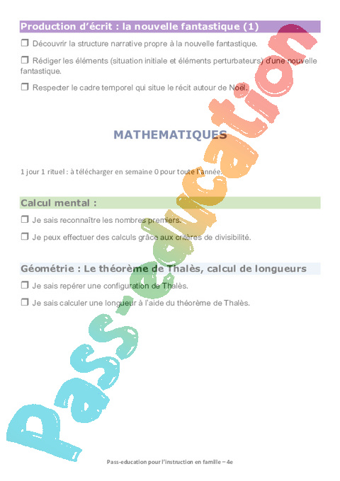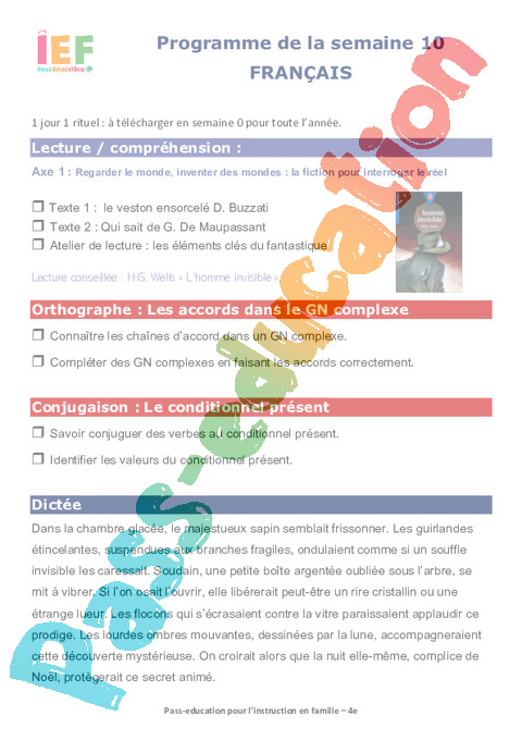 Semaine 10 – école à la maison IEF : : 10eme Harmos