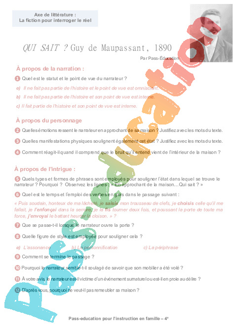 2b – Questionnaire QUI SAIT – MAUPASSANT Semaine 10 IEF : 10eme Harmos pdf
