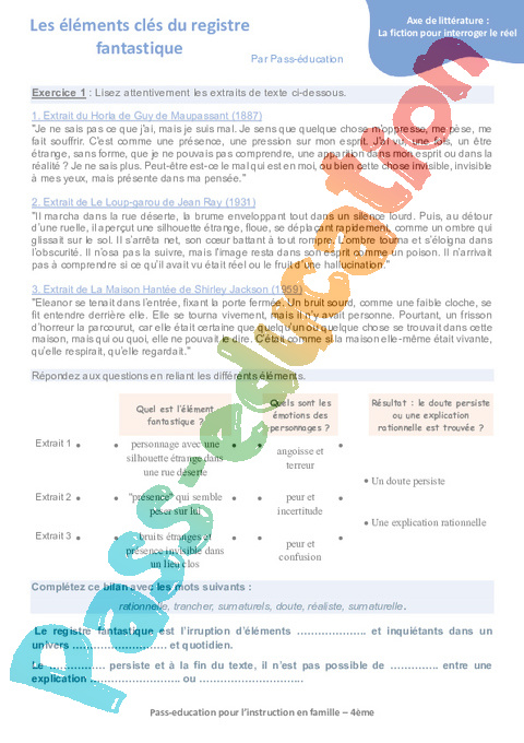 3 Atelier de lecture les caractגristiques du registre fantastique Semaine 10 IEF : 10eme Harmos pdf