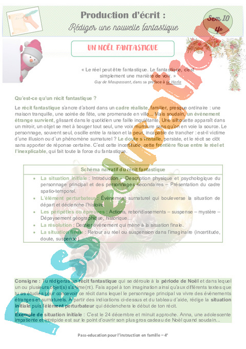 4 Expression écrite récit fantastique Noel Semaine 10 IEF : 10eme Harmos pdf