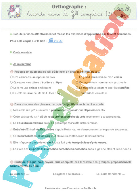 5 a Orthographe- Accords dans le GN complexe (2) Semaine 10 IEF : 10eme Harmos pdf