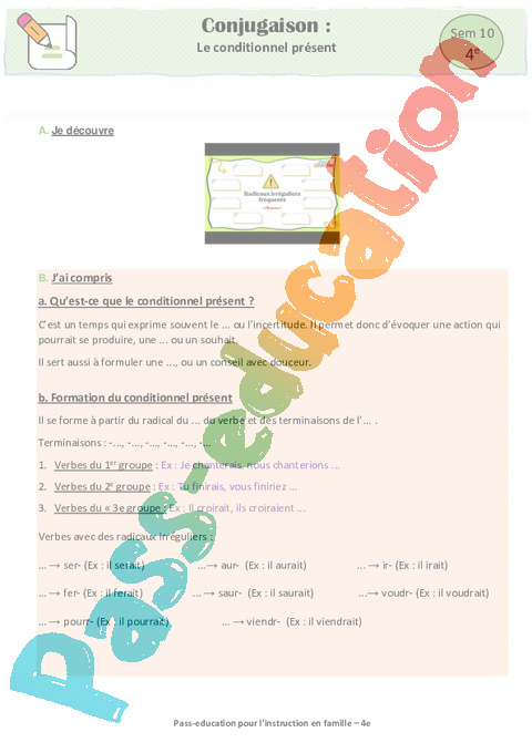 6 a Conjugaison- Le conditionnel présent Semaine 10 IEF : 10eme Harmos pdf