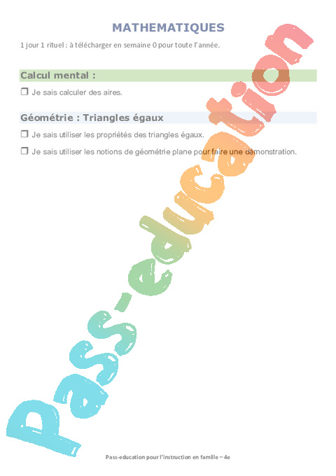 1 b-Carte mentale – Triangles égaux semaine 15 école à la maison IEF : 10eme Harmos pdf