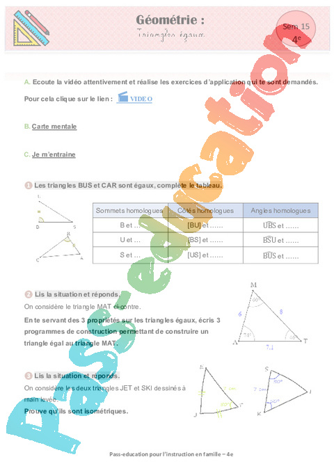 1 a Géométrie – Triangles égaux semaine 15 école à la maison IEF : 10eme Harmos pdf