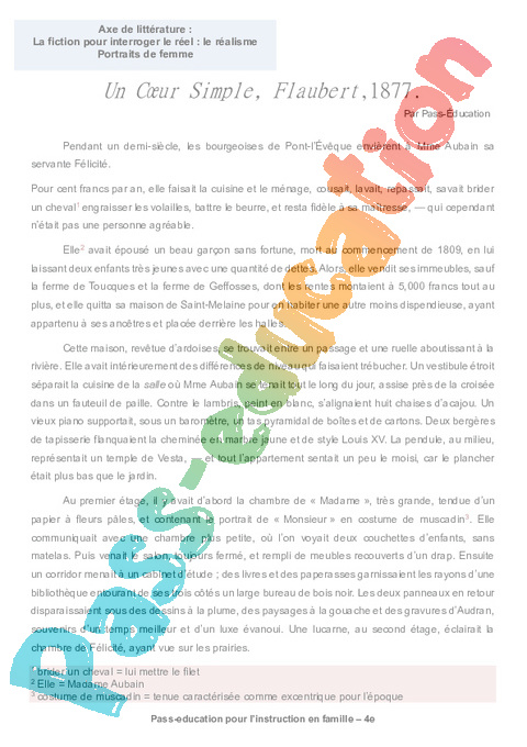 1a Un coeur simple – Flaubert semaine 15 IEF : 10eme Harmos pdf