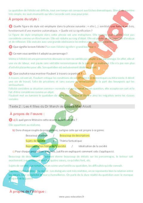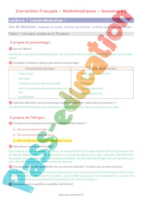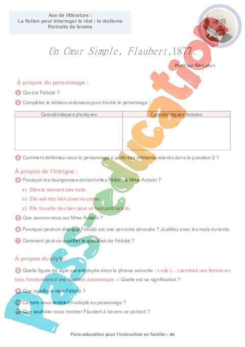 1b Questionnaire Un coeur simple – Flaubert semaine 15 IEF : 10eme Harmos pdf