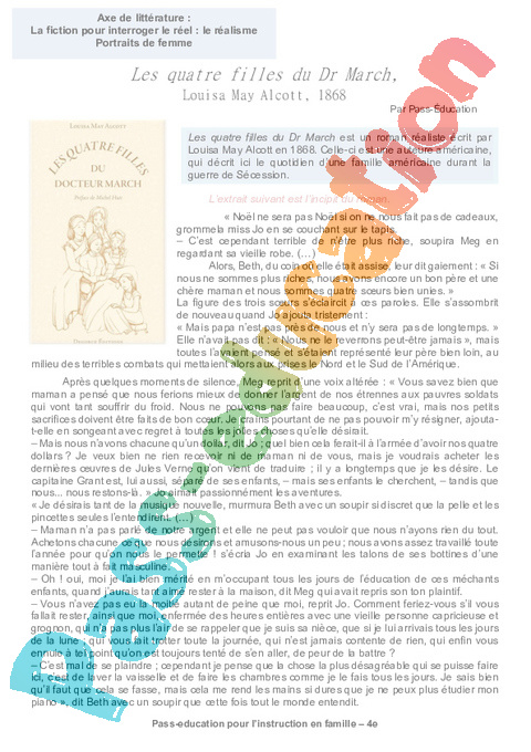 2 a Les quatre filles du Dr March Louisa May Alcott semaine 15 IEF : 10eme Harmos pdf
