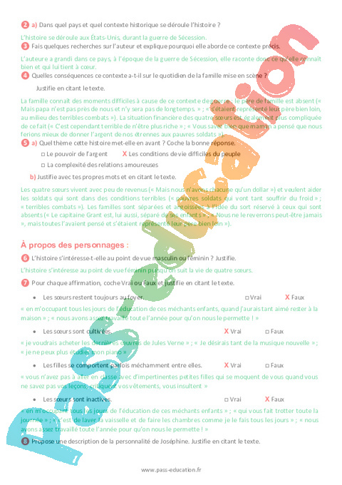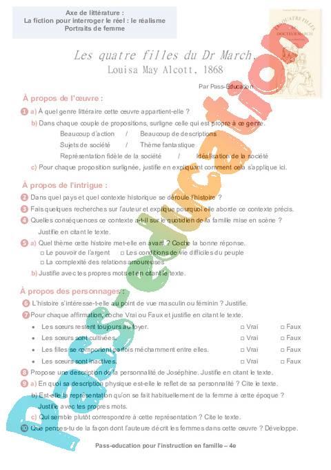 2b Questionnaire Les quatre filles du Dr March Louisa May Alcott semaine 15 IEF : 10eme Harmos pdf