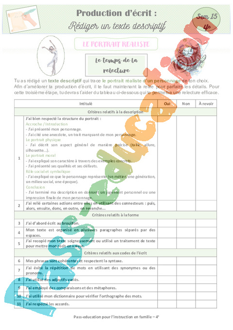 4 Expression écrite texte descriptif portrait relecture semaine 15 IEF : 10eme Harmos pdf