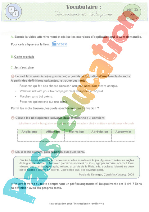 6 a Vocabulaire- Dérivations et néologismes semaine 15 IEF : 10eme Harmos pdf