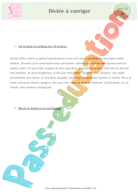 7 Dictée à corriger semaine 15 IEF : 10eme Harmos pdf