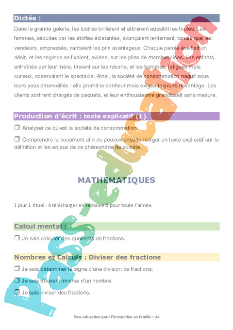 1 b-Carte mentale- Diviser des fractions Semaine 16 IEF : 10eme Harmos pdf