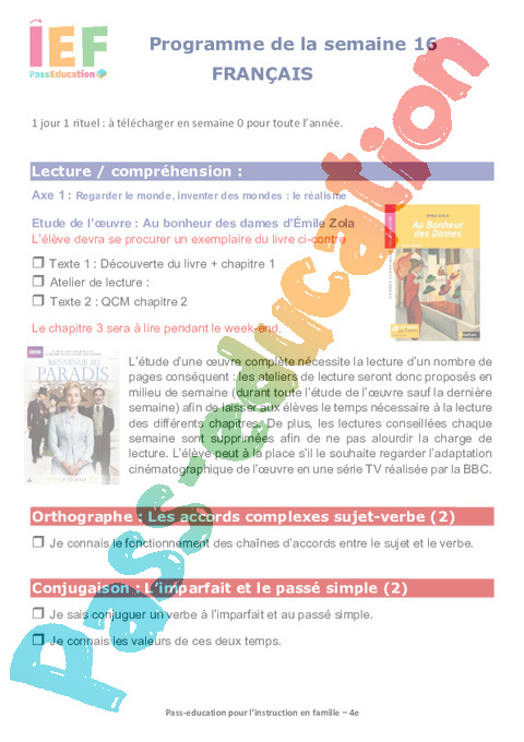 Semaine 16 – école à la maison IEF : : 10eme Harmos