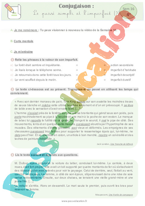 6 a Conjugaison- Le passé simple et l’imparfait (2) Semaine 16 IEF : 10eme Harmos pdf