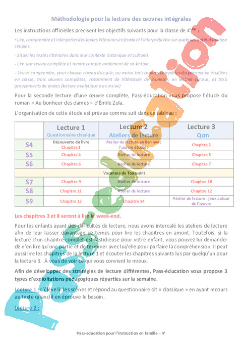 Méthodologie pour la lecture des oeuvres intégrales Semaine 16 IEF : 10eme Harmos pdf