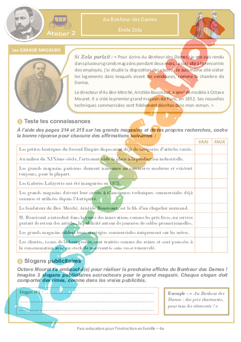 Atelier de lecture : La naissance des grands magasins
