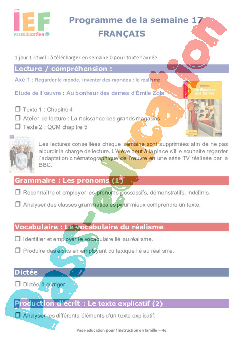 0 Programme Semaine 17 – école à la maison IEF : 10eme Harmos pdf