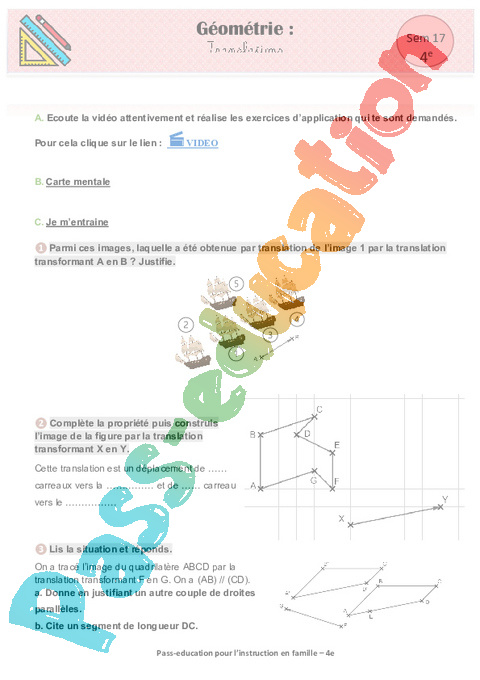1 a Géométrie Translations Semaine 17 IEF : 10eme Harmos pdf