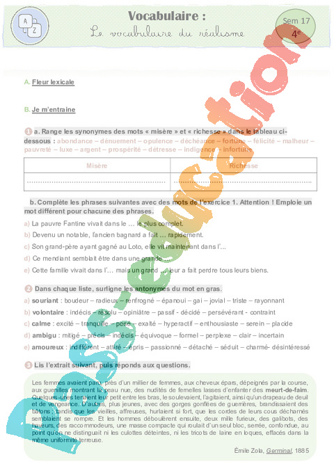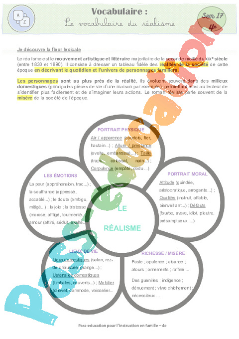 6 b-Fleur lexicale- Le vocabulaire du réalisme Semaine 17 IEF : 10eme Harmos pdf
